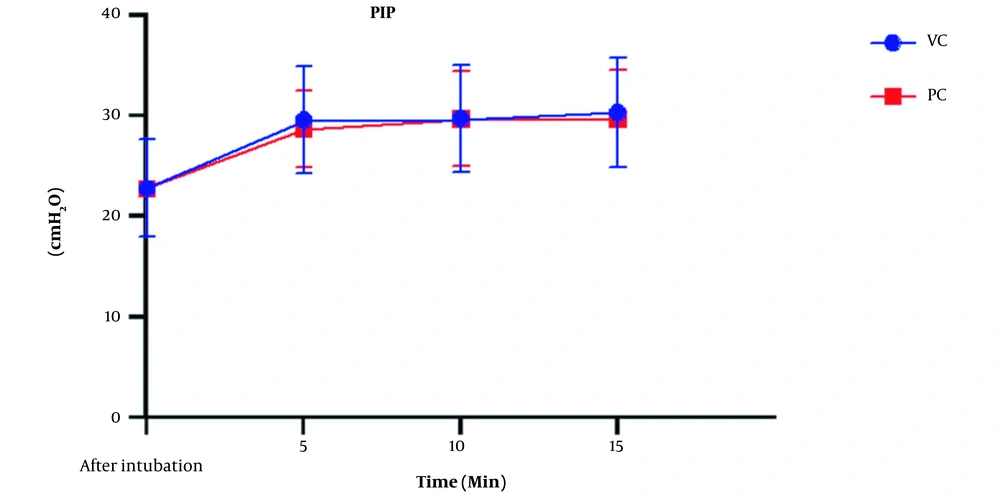In some previous studies, the most critical advantage of PCV ventilation has been the peak inspiratory pressure reduction and, consequently, the lower probability of barotrauma (21, 22). Dion et al. examined 20 patients undergoing laparoscopic bariatric surgery and used VCV, PCV, and pressure control-volume guaranteed (PCV-VG) modes; they found that PCV and PCV-VG caused less PIP compared to VCV (23). Our study did not show this difference between the two types of ventilation, which may be due to the use of low TV based on the IBW instead of the actual weight of patients in calculating TV.