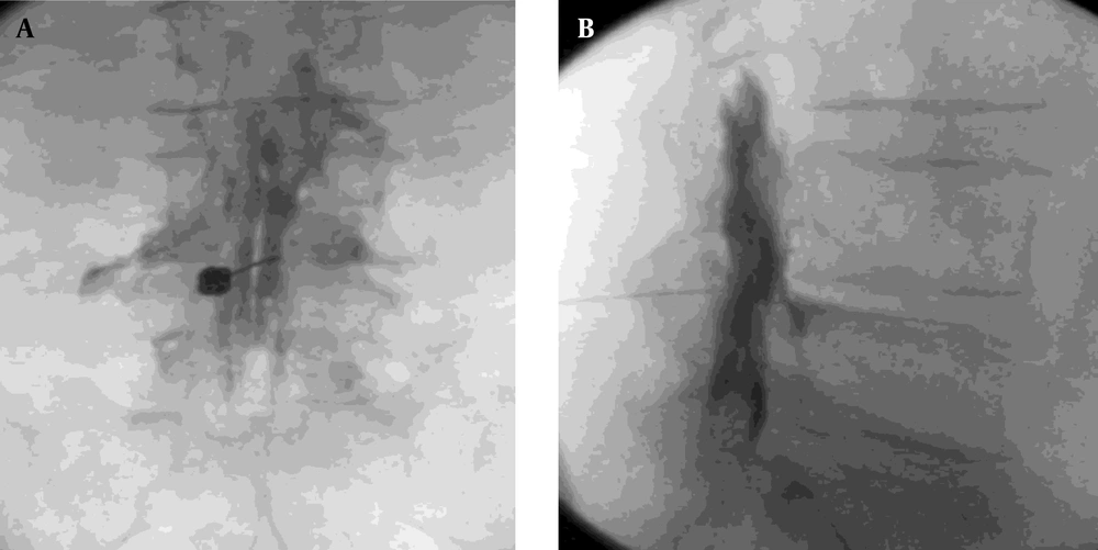 Low back pain (LBP) is often described as pain or discomfort localized between the lower rib margins and the gluteal folds, with or without symptoms extending into the legs (1, 2). Typically, a variety of non-surgical options are recommended to manage lumbosacral radicular pain, including lifestyle modifications, physical therapy, exercise, oral or local analgesics, and epidural steroid injections (ESIs) (3, 4). The primary objective of these conservative strategies is to delay or prevent the necessity for surgery (5, 6). The ESIs are minimally invasive treatments that are extensively used and have been demonstrated to be effective in reducing lumbosacral radicular pain. In addition, they alleviate acute lower back and leg pain by administering corticosteroids into the epidural space through caudal, interlaminar, or transforaminal techniques, frequently in conjunction with local anesthetics (7). Among the most frequently employed interventions for chronic spinal pain are epidural corticosteroid injections. They alleviate pain by reducing inflammatory mediators, reducing vascular permeability, and minimizing C fiber injury (8). The efficacy of local anesthetics administered through epidural injection has been demonstrated in numerous studies, particularly in patients with elevated cerebrospinal fluid protein levels, a marker frequently associated with inflammation (9). Epidural injections continue to be a key tool in pain management, and new technologies have made these procedures even more precise and effective. One such innovation is the Racz catheter epidural adhesiolysis, which helps target medication delivery more accurately and breaks down scar tissue that might be contributing to a patient’s pain (10).