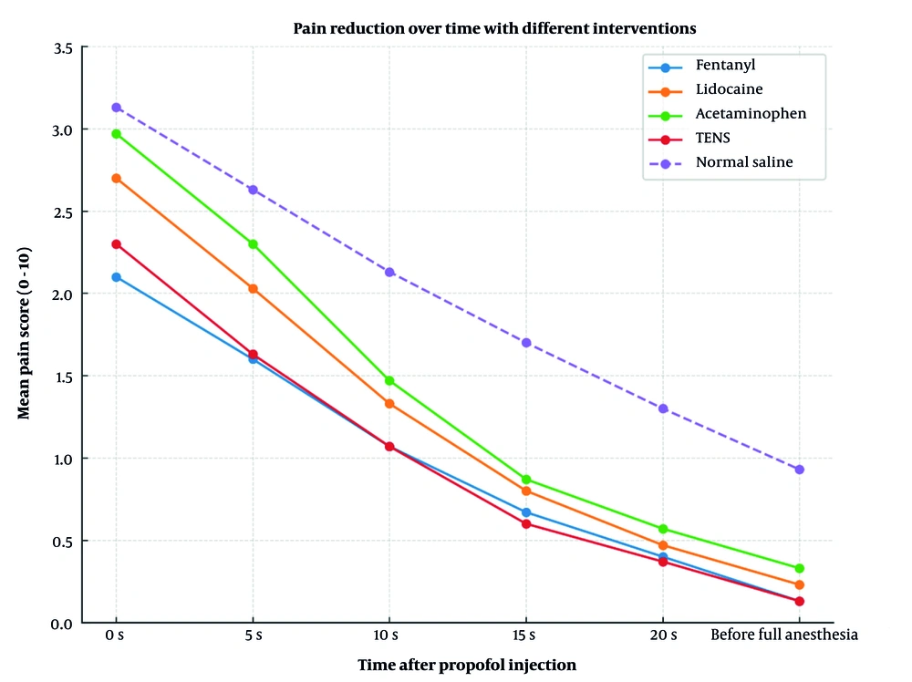 This study aimed to compare the effects of pretreatment with lidocaine, intravenous acetaminophen, intravenous fentanyl, and TENS on pain reduction during propofol injection. This comparison was necessary because propofol injection pain is very common, and minimizing anesthesia-related discomfort is essential.