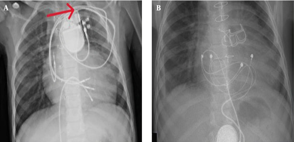 Many interventions have been proposed to reduce the risk of implant infection. The prophylactic antibiotic has shown a significant effect on declining this risk; however, other measures are yet to be proven as effective interventions (10). In a meta-analysis, no significant difference in mortality risk was found between men and women or between patients with PPM and ICD devices. While diabetes mellitus is a risk factor for infection, it does not significantly affect the mortality rate (21). Infection with the microorganism S. aureus is associated with a higher (20 - 30%) risk of mortality in these patients (22). The CIED infections can lead to complications like heart failure and emboli, which indicate a high probability of infective endocarditis and may necessitate open surgery (23). Identifying microorganism sensitivity (MSSA vs. MRSA) is crucial for antibiotic selection, but device extraction is the primary treatment for better outcomes. However, frail patients with severe comorbidities may not be able to undergo these procedures (24).