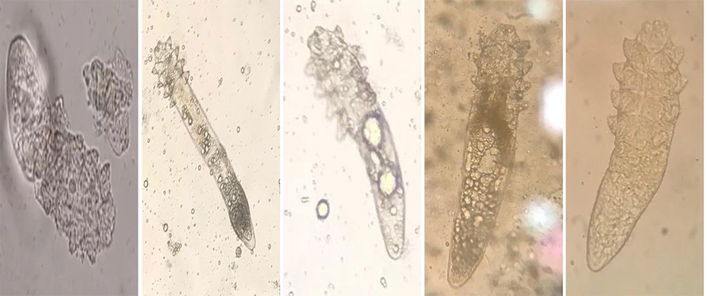Demodex species are permanent ectoparasites belonging to the order Acarina of the class Arachnida (3). Also, they belong to the family Demodicidae, are represented by seven genera, and almost 108 species. More than 100 species of Demodex have been identified; however, only two species, Demodexbrevis (Akbulatova, 1963) and D.folliculorum (Simon, 1842), are known to inhabit the human body (4-7). Demodex species undergo several developmental stages during their life cycle. Mating occurs between mature males and females approximately half a day after reaching adulthood, after which eggs are deposited within hair follicles or sebaceous glands. The six-legged larvae that emerge subsequently pass through two nymphal stages before developing into adults. These mites have a relatively short lifespan, typically ranging from 14 to 18 days, and spend their entire life cycle on the host (8-10).
