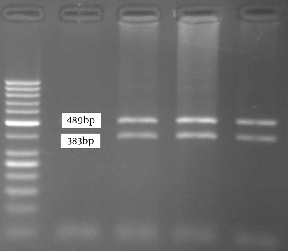 Genomic DNA was extracted via the salting out method from the whole blood of the patients (8). The CYP1B1 prevalent mutations of p.G61E, p.R390H, and p.R469W were identified using the polymerase chain reaction-restriction fragment length polymorphism (PCR-RFLP) technique. The primers corresponded to the sequences adjacent to exon 2, which contains the initiation codon: