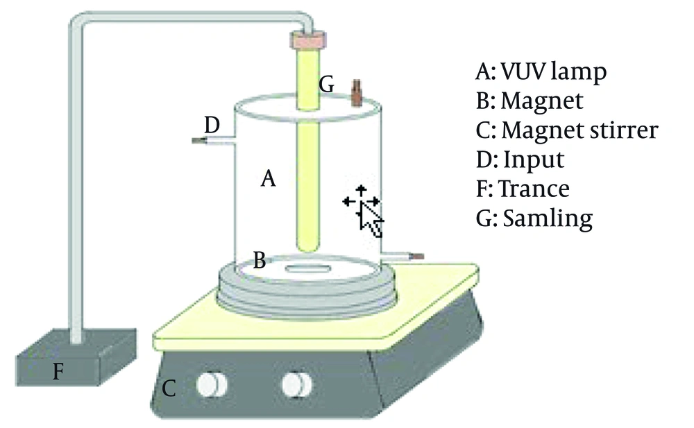 Various techniques have been applied to remove TC from aquatic environments, including activated carbon, membrane filtration, adsorption, and advanced oxidation processes (AOPs) (17, 18). AOPs are oxidation technologies used to degrade both organic and inorganic pollutants in water, relying on the generation of highly reactive radicals such as hydroxyl radicals (OH•) (19, 20). The AOPs are classified into two main groups: (1) Photochemical AOPs and (2) non-photochemical AOPs (21, 22). Examples of AOPs applied for antibiotic removal include UV/O₃, UV/VUV, and UV/H₂O₂ processes (23-25).