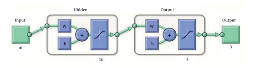 In earlier studies, logistic regression (LR) models were mainly used as a non-invasive, technical method to predict treatment outcomes (30-32). On the other hand, in some articles the performance differences between two LR and ANN models were discussed in which ANN showed a significantly better performance (12, 33). Considering all these cases, an ANN model was designed which is a non-linear statistical data modeling tool. ANN has the benefit of being able to learn non-linear interconnectivity of inputs and correlations between inputs and outputs by using a set of observations and put them into continuous functions to generate an accurate predictive model without the need of understanding the underlying relationships (13, 14, 34).