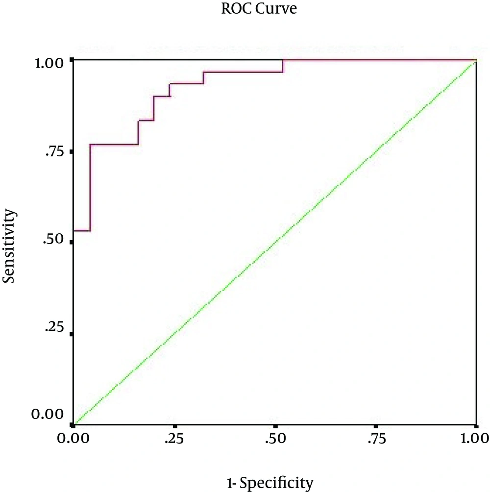 Regarding the mean levels of serum sTNFR-IIα in the present study, a significant difference was shown between the HCC and the non-HCC groups. The best cutoff value for diagnosing HCC was ≥ 250 pg/mL with sensitivity of 99%, specificity of 72%, positive predictive value of 78%, and negative predictive value of 95% with 87% accuracy. However, a higher cutoff value was reported by Zekri et al. who stated that levels of sTNFR-IIα were significantly elevated in patients with HCC in comparison to those with PNALT and CLD. Analysis of sTNFR-IIα by receptive operative curves revealed satisfactory values regarding sensitivity (70.6%) and specificity (90%) at a cutoff value of ≥ 398 pg/mL (31).