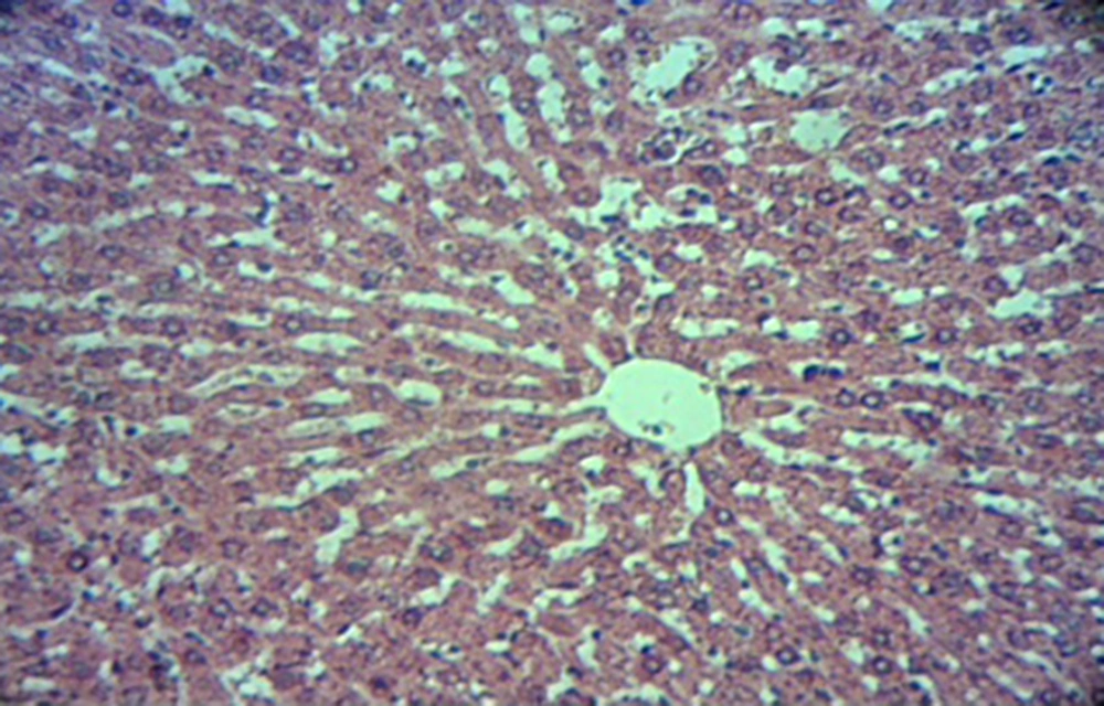 Pathology of liver tissue evaluated and there was no sign of edema, irregularity of the hepatocells, vein engorgement, necrosis, accumulation of kupfer cells, change in portal area and infiltration of inflammatory cells. In short, no significant effect on liver tissue was revealed by various doses (20, 40, or 80 mg/kg) of salep (Figure 1).