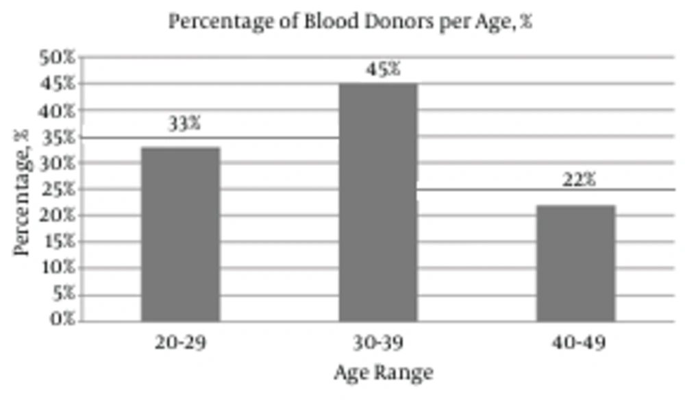 In order to ensure the blood supply as safe as possible, all donors were screened to meet certain eligibility criteria where the donor must be at least 17 years old, with a pulse of 50 - 100 beats per minute (no abnormalities), body temperature of ≤ 37.5ºC (orally), body weight of > 50 Kg, hemoglobin level of ≥ 12.5 g/dL, hematocrit of ≥ 38%, and blood Pressure of: ≤ 180 mm Hg systolic and ≤ 100 mmHg diastolic. Moreover, infectious disease screening tests for HBsAg, anti-HBc, anti-HCV (Hepatitis C virus), HIV-1 (Human immunodeficiency virus-1), and HIV-2 antibodies as well as Venereal Disease Research Laboratory (VDRL) serological test for syphilis were carried out for each donor. The donors were also screened for disease risk factors using a health history questionnaire where they were asked specific questions regarding lifestyle, health, medical, and travel history.