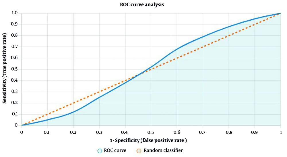 ![Receiver operating characteristic (ROC) curve for biomarker detection by quantitative real-time polymerase chain reaction [qRT-PCR; area under the curve (AUC) = 0.82, sensitivity = 64.3%, and specificity = 90.4%] Receiver operating characteristic (ROC) curve for biomarker detection by quantitative real-time polymerase chain reaction [qRT-PCR; area under the curve (AUC) = 0.82, sensitivity = 64.3%, and specificity = 90.4%]](https://services.brieflands.com/cdn/serve/31710/1251bf263682c3c460a50b82569eb483fd009933/hepatmon-25-1-166059-i001-preview.webp)