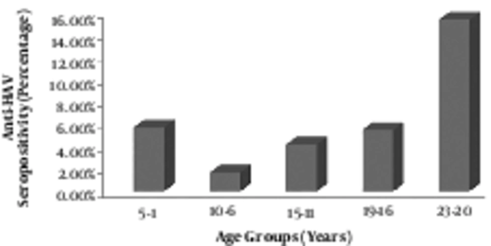 HAV seroprevalence showed significant difference in various parts of Iran (18-23). This divergence in HAV seroprevalence could be due to different studied populations with different socio - economic and hygienic status as well as different selection methods.