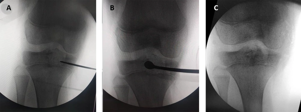Postoperative pain management was provided as per standard protocols, and patients were encouraged to begin partial weight-bearing with the aid of crutches within the first week. Follow-up evaluations were conducted at regular intervals of 6 weeks, 3 months, 6 months, and annually after that. During these appointments, we led clinical evaluations and radiographic imaging to monitor pain and joint function, assess the healing progress of lesions, and detect any recurrence. We used the Musculoskeletal Tumor Society (MSTS) scoring system to evaluate functional outcomes (12). For interpretation, MSTS scores were categorized as excellent (28 - 30), good (24 - 27), fair (18 - 23), and poor (< 18).