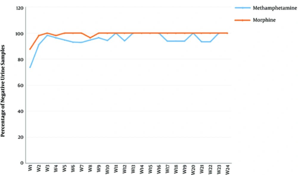 This study also described statistically significant changes in several subscales of ASI - Lite. These include drug, family, and psychiatric subscales. In addition, significant changes were observed in all subscales of WHOQOL - BREF, including physical health, psychological health, social relationship, and environmental health. These significant changes in both quality of life and addiction severity were similar to the results described in a multi-site clinical trial, which assessed Opioid Substitution Treatment (OST) in 13 treatment programs in seven low and middle income countries (24). The quality of life and addiction severity scales are important findings that are associated with improved retention (25).