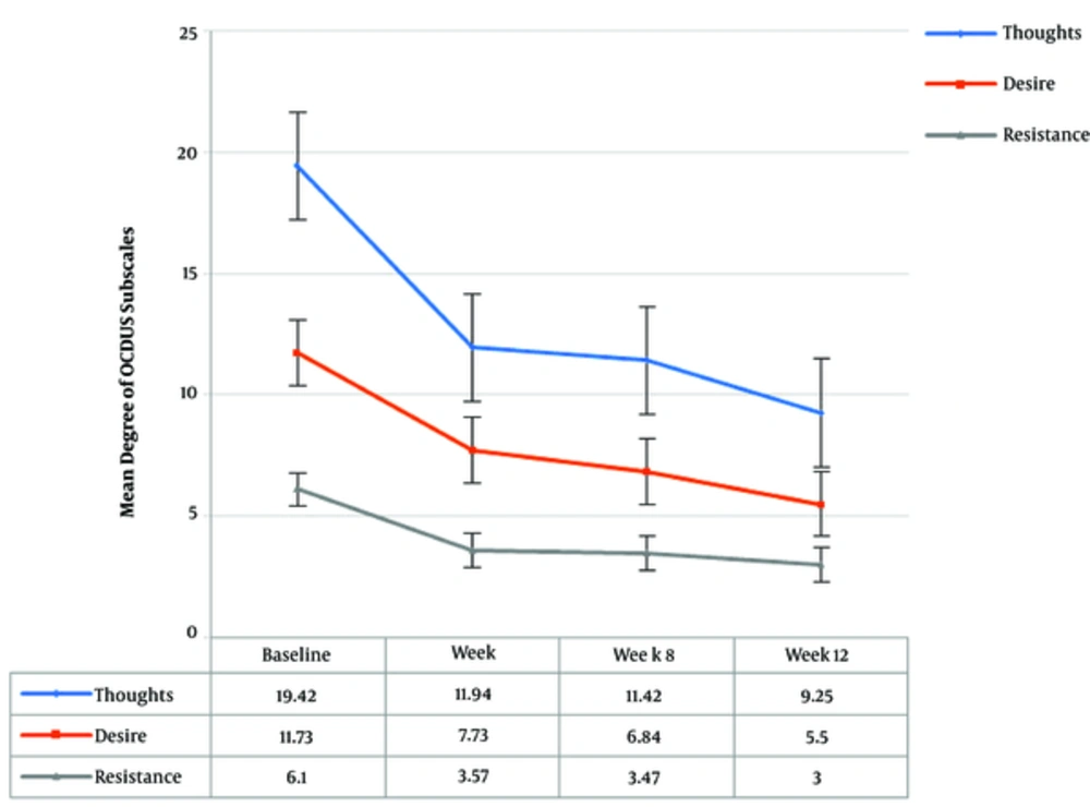 The Persian - validated version of Obsessive Compulsive Drug Use Scale (OCDUS) is a self - completed questionnaire, which assesses periodic craving upon substances, such as cocaine and heroin and measures three components of drug thoughts, desire to use drug, and resistance against thoughts and decisions to use drugs, and each question contains of five grade options, which are responded according to the participant’s experiences during the previous week (16).