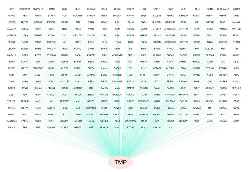 1. The TMP targets mainly depend on TCMSP. Although we also predict targets from Pharmmapper, SwissTargetPrediction, and Targetnet databases based on the structure of TMP, there is still a possibility that the relevant targets are not comprehensive.