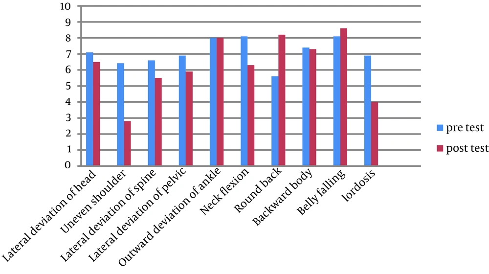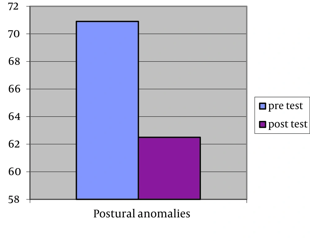 Postural anomalies refer to the adverse changing which deform the skeletal structure and natural height, these anomalies appear due to the environmental reasons, improper muscular function and physical movements and its recovery depends on the removing of related factors. Totally, we can dissect the causative factors leading to bringing about these anomalies, which are related to the person’s condition and the environment of conditions. One of the important aims of the corrective exercise is to recognize the physical weaknesses and postural abnormalities using the simple and available methods. On time, recognition of physical weaknesses is considered as one of the major steps of the preventive measures (1). The studies showed that the frequency of postural abnormalities is high in Iran (2-5).