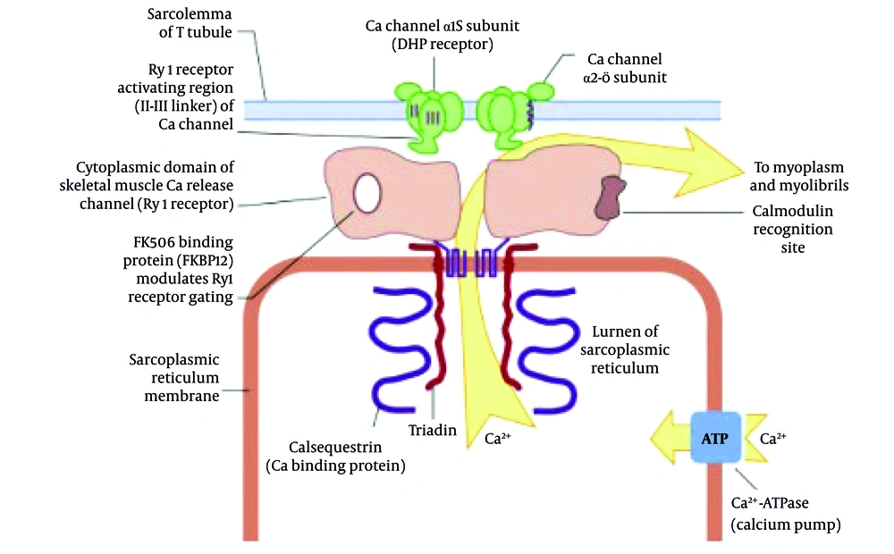 Malignant hyperthermia (MH) is a rare, life-threatening pharmacogenetic disorder characterized by a hypermetabolic state in skeletal muscle following exposure to specific anesthetic agents, such as depolarizing muscle relaxants (e.g., succinylcholine) and volatile anesthetics (e.g., halothane, enflurane, isoflurane, desflurane, and sevoflurane) (1-3). This condition is primarily associated with mutations in the ryanodine receptor type 1 (RYR1) gene or, less commonly, the CACNA1S gene, both of which are critical in regulating calcium homeostasis within skeletal muscle cells (4). A disruption in calcium regulation leads to uncontrolled calcium release from the sarcoplasmic reticulum (SR), resulting in sustained muscle contraction, increased metabolism, and heat production (5). When exposed to triggering agents like isoflurane, mutated RYR1 receptors cause excessive calcium release from the SR, leading to sustained muscle contraction, hypermetabolism, ATP depletion, lactic acidosis, and heat production (6) (Figure 1). Clinically, MH presents with hypercarbia, unexplained tachycardia, rapid rise in body temperature, muscle rigidity, and mixed metabolic and respiratory acidosis (7). In severe cases, it can lead to rhabdomyolysis, disseminated intravascular coagulation (DIC), acute renal failure, hyperkalemia, and cardiac arrest (8). The estimated incidence of MH ranges from 1:5,000 to 1:100,000 anesthetic exposures, depending on the population studied and the use of triggering agents (9). Despite its rarity, MH remains a significant concern for anesthesiologists due to its rapid onset and potential for catastrophic outcomes if not promptly recognized and managed (10). The diagnosis of MH is primarily clinical and is based on the identification of characteristic signs and symptoms during or shortly after anesthesia (11). Early recognition is essential for initiating appropriate management, including discontinuation of triggering agents, administration of 100% oxygen, and rapid administration of dantrolene, the only effective pharmacologic treatment available (12). Dantrolene works by inhibiting calcium release from the SR, thereby reducing muscle rigidity and hypermetabolism (13). Prompt administration of dantrolene has been shown to reduce mortality rates from MH from approximately 80% to less than 5% (14). In this report, we present a case of MH triggered by isoflurane in a young woman undergoing elective septorhinoplasty. The rapid onset of symptoms and the effective management with dantrolene highlight the importance of vigilance, preparedness, and adherence to established protocols for MH in all anesthesia settings. This case also underscores the critical role of continuous monitoring, particularly capnography, in detecting early signs of MH and preventing fatal complications.