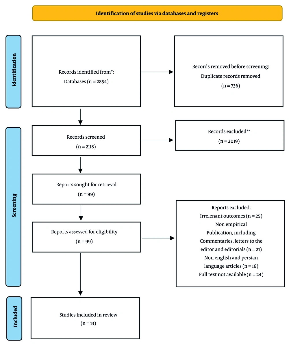Only studies published between January 2010 and March 2025, and written in either English or Persian, were included.