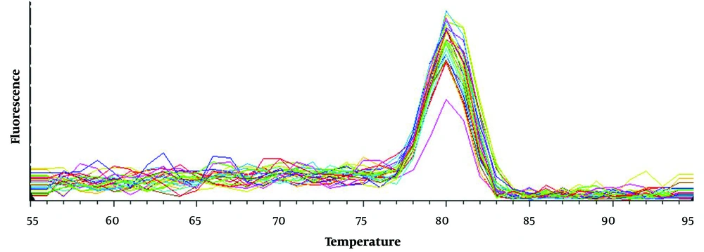 Beacon Designer 8 software (Premier Biosoft, USA) was used for designing exon-junction primers. Evaluation of primer dimer and additional loops was accomplished with Oligo7 software (Molecular Biology Insights, USA). Table 1 presents primer specifications used in the study. The symplekin scaffold protein (SYMPK) gene was considered the reference gene (16).