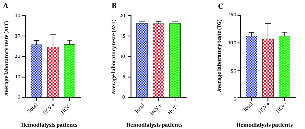 Chronic kidney disease (CKD) is one of the most significant health concerns in every country, and CKD patients constitute a significant portion of every society, with a global prevalence of 13.4% (11.7 - 15.1%) (1). End-stage renal disease (ESRD) is the final and permanent stage of CKD in which kidney function decreases to the point where the kidneys can no longer function independently. The majority of patients with ESRD require dialysis or a kidney transplant. Consequently, 71% and 29% of ESRD patients in the United States require dialysis and a kidney transplant, respectively (2). As a widespread treatment method for ESRD patients, dialysis removes excess water, soluble substances, and toxins from the blood, performing a function similar to a healthy kidney (3). Multiple risk factors have been reported to predispose individuals to CKD or the progression of the disease, the most significant of which are African-American race, male gender, age over 60, positive family history, smoking, obesity, underlying diseases like diabetes mellitus (DM) and hypertension, and infectious agents like hepatitis B virus (HBV), human immunodeficiency virus (HIV), human T-lymphotropic virus 1 (HTLV-1), and hepatitis C virus (HCV) (4-6).