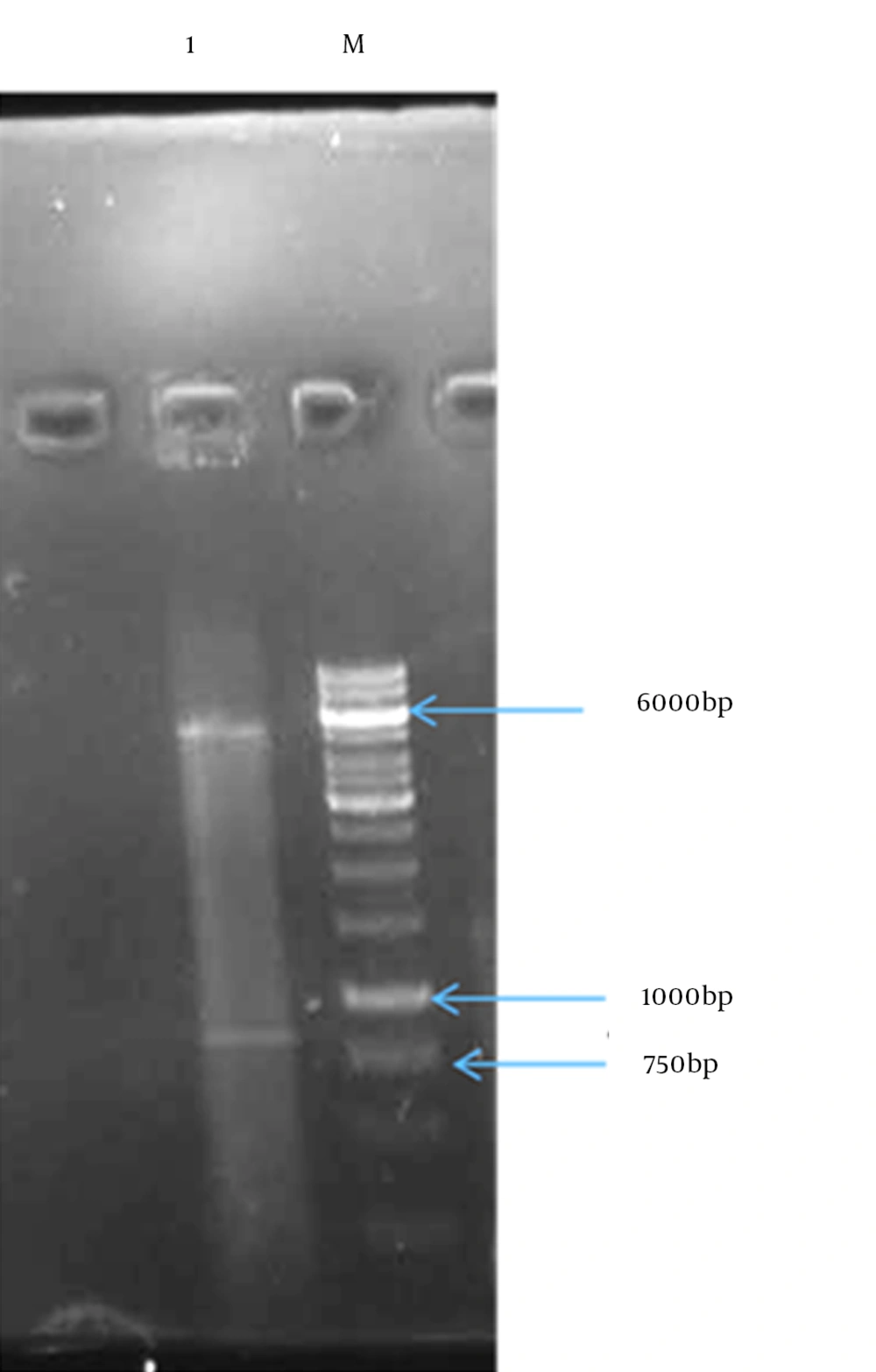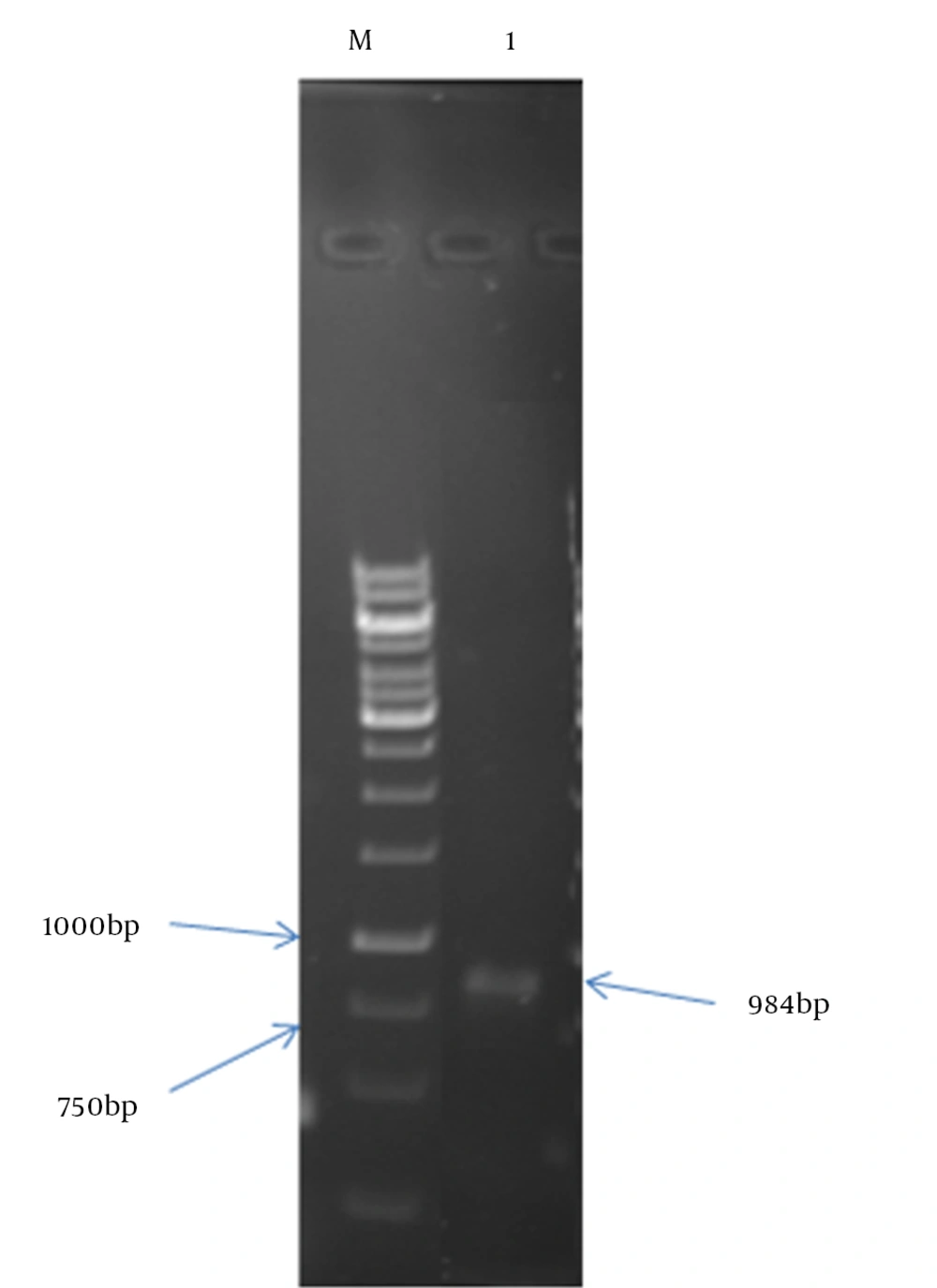 Lane M: 1 kb size marker; Lane 1: PCR product.