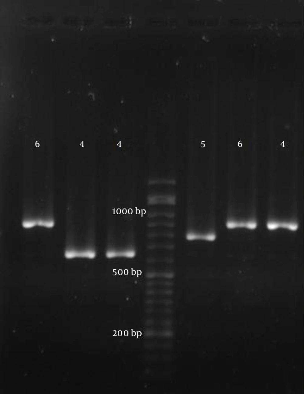 A total of 620 stool samples were randomly collected from patients with diarrhea who presented at two major hospitals (Ayatollah Kashani and Afzalipour) in the city of Kerman from June 2013 to August 2014. The stools were immediately cultured on xylose lysine deoxycholate (XLD) and MacConkey agar media. The lactose-positive colonies were then re-cultured with the standard biochemical method for detection of E. coli (11). Enteroinvasive E. coli isolate detection was conducted using a PCR assay with ipaH primer. The EIEC isolates were then stored in TSB broth containing 30% glycerol at a temperature of -70°C until further analysis.