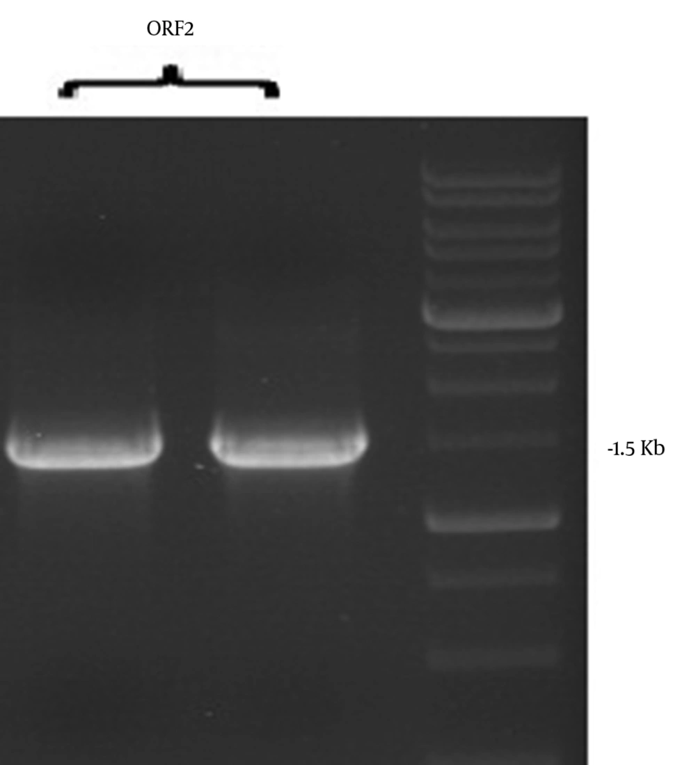 With regards to consequences and lack of specific treatment, the immunization can be an effective option for prevention of the HEV infection. Since no cell culture system has been adopted for cultivation of HEV, the preparation of vaccine remains a great challenge. So far, several efforts have been made to develop HEV vaccines through expression of different truncated ORF2 in many expression systems such as: Escherichia coli, yeast, plant, mammalian and insect cells (1, 5-7). The BES is an efficient insect system for HEV vaccine development because of its capacity to produce a 56 KDa protein from amino acid 112 to 607 (8). The neutralizing epitope of this protein is between 457 and 607 region (5). The truncated 112 - 578aa and 112 - 660aa of the ORF2 HEV have also been investigated in the BES (5, 7).