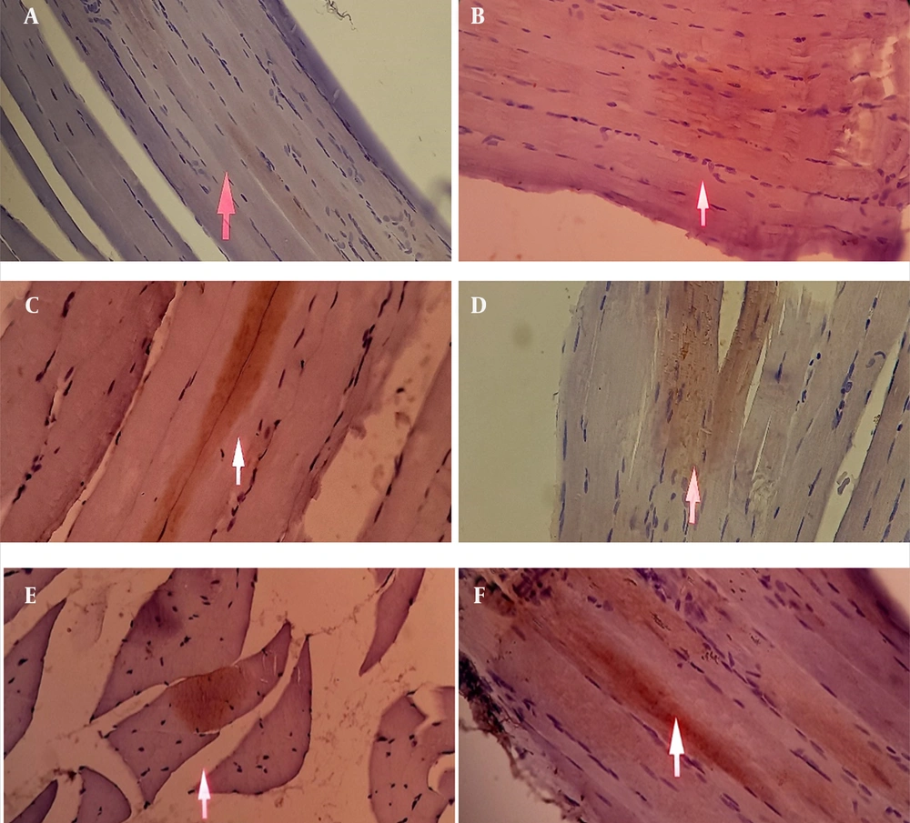 Immunohistochemical testing was performed according to general immunohistochemical testing procedures (16) using Leica Biosystems. Skeletal muscle tissue was obtained from the gastrocnemius muscle, paraffin-embedded, and sectioned at a thickness of 4 µm using a microtome. Each paraffin block was recut once for antibody staining. Sections were incubated with a GLUT4 monoclonal antibody for 30 min at room temperature. After washing with phosphate-buffered saline (PBS) (pH 7.4), sections were treated with the Dako REAL EnVision Detection System and incubated for 30 min. Slides were washed in PBS-Tween 20, developed with 3,3'-diaminobenzidine (DAB) for 2 - 5 min, and rinsed in running water. Counterstaining was performed with hematoxylin, followed by rehydration through graded ethanol (70 - 100%) and clearing in xylene. Finally, sections were mounted with a coverslip. Complete procedure presented in Appendix 4, in the Supplementary File.