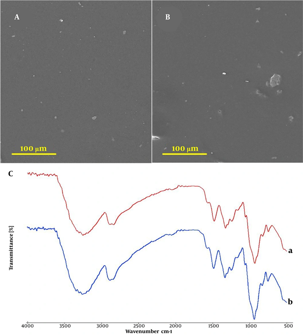 ![Surface morphology of chitosan films: A, pure chitosan (CH); and B, CH film incorporating with <i>Scrophularia striata</i> extract [CH+SS; FTIR spectra of; C.a, CH film and C.b, CH+SS composite film]. Surface morphology of chitosan films: A, pure chitosan (CH); and B, CH film incorporating with <i>Scrophularia striata</i> extract [CH+SS; FTIR spectra of; C.a, CH film and C.b, CH+SS composite film].](https://services.brieflands.com/cdn/serve/3170d/c2cc6512afa38a7873535ff3922042b9e717ba30/jjnpp-20-4-165986-i003-preview.webp)