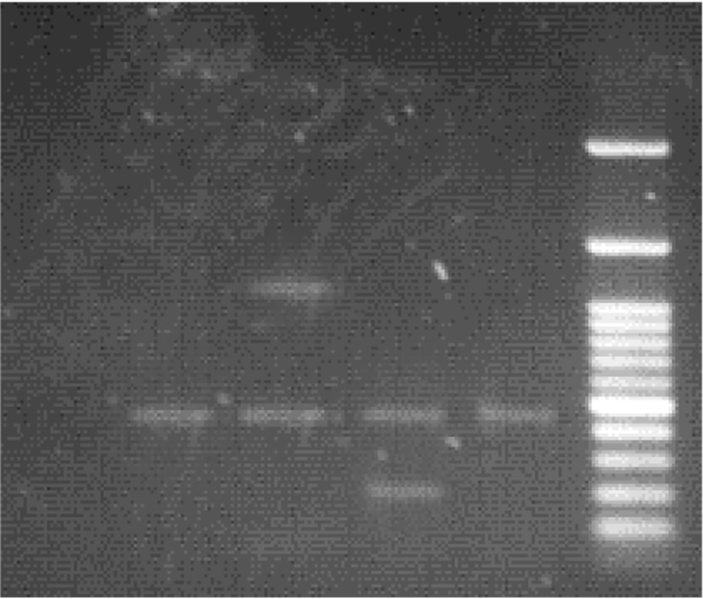 After electrophoresis of PCR products for the detection of Brucella spp, the amplicon size for the Brucella genus was 450 bp, while it was 218 bp for B. abortus and 1071 bp for B. millitensis (Figures 1 and 2).