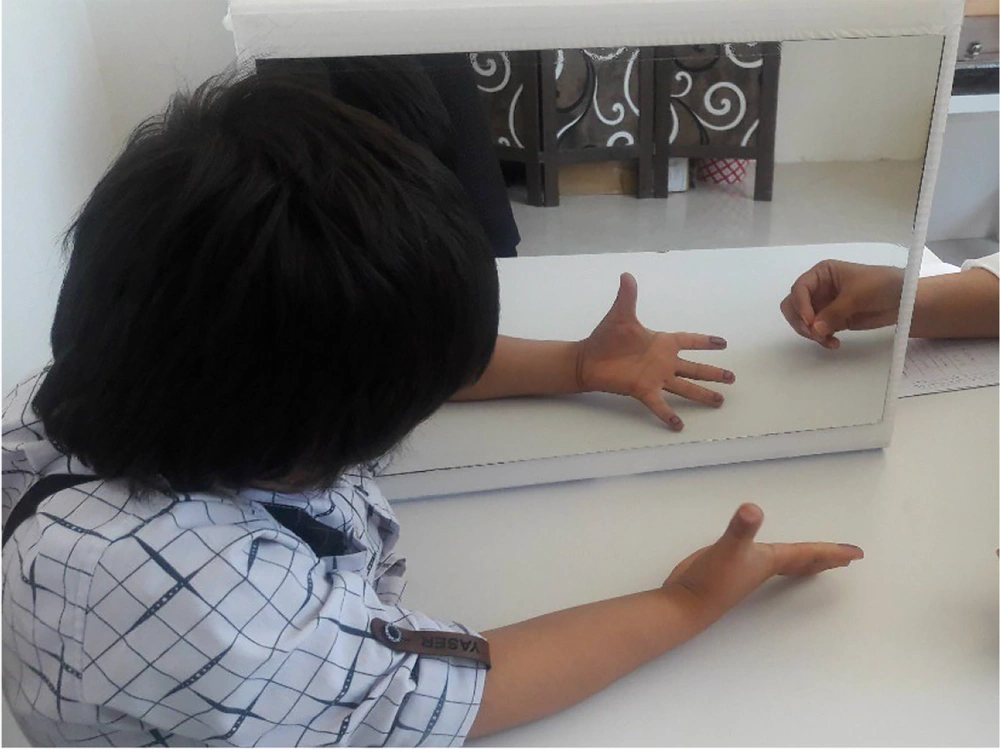 The study was conducted at Sepid Neurology Clinic in Kermanshah, Iran. Each participant underwent a total of 18 sessions. The first session served as an orientation, during which demographic and clinical data were collected using the Personal Information Questionnaire and the Strengths and Difficulties Questionnaire (SDQ). Participants were also familiarized with the motor assessment and intervention procedures. Written informed consent was obtained from the parents or legal guardians of all participants under the age of 16 prior to any formal evaluation. During the intervention, participants were instructed to focus for one to two minutes on the mirror image of their unaffected hand, aiming to visualize it as their affected limb behind the mirror. Treatment commenced once the participants perceived the mirror image as representing their affected limb.