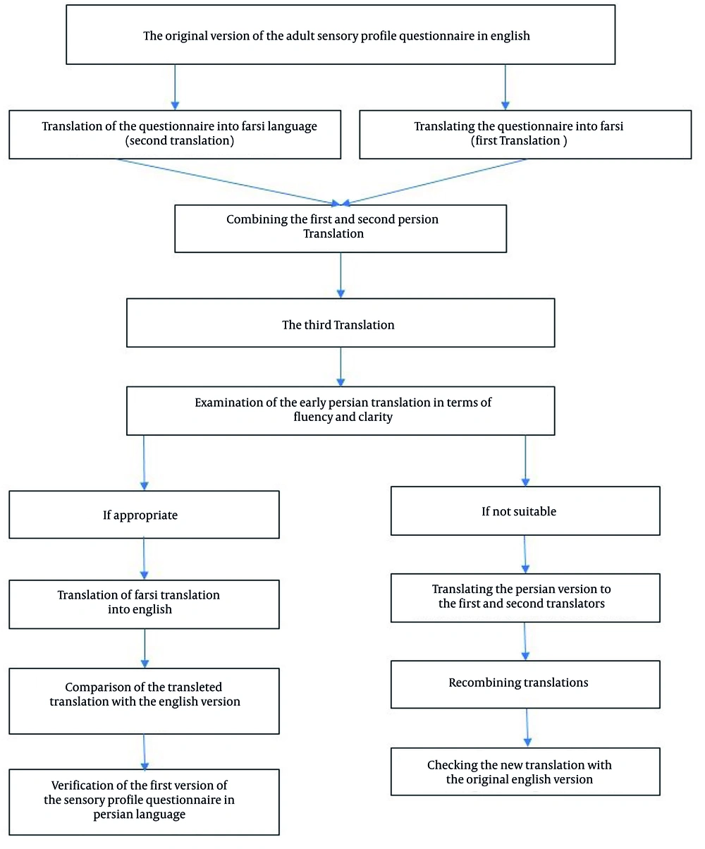 1. Face validity: The face validity of the Persian version of the Adult Sensory Profile was established through the independent double back-translation method.