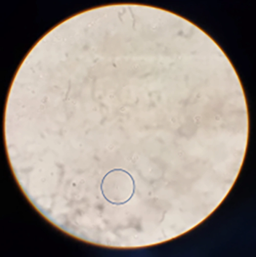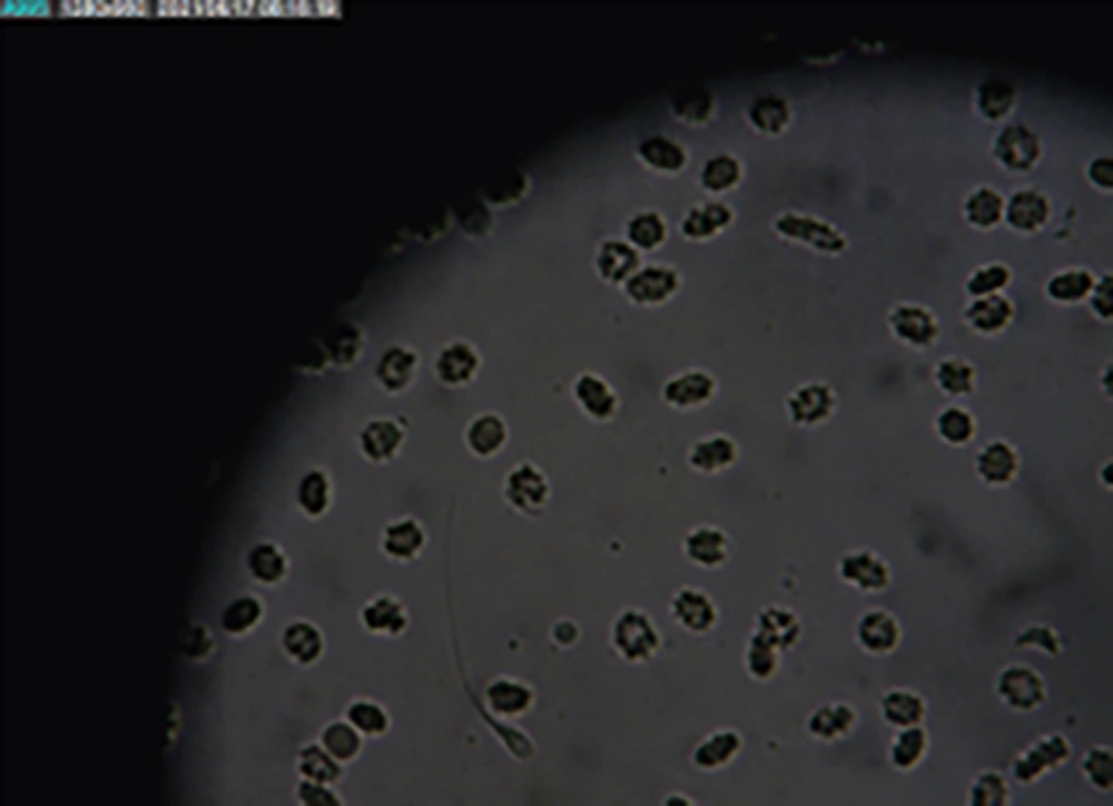 The patient elected to undergo sperm retrieval with PESA. However, no motile spermatozoa were found during the procedure. The TESE was then performed, but unfortunately, no spermatozoa were found during the procedure. A testicular biopsy taken during TESE revealed a Johnsen score of 5 in both testicles. He was then counseled for a testicular mapping biopsy. The patient elected to undergo a testicular mapping biopsy. Non-motile spermatozoa were found at site 12 during the procedure (Figure 7). There were no adverse effects observed afterward.