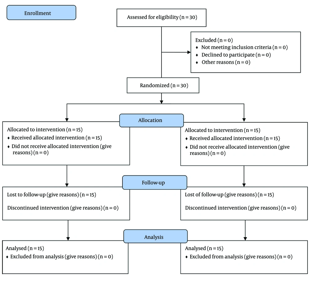 The study was approved by the Ethics Committee of Mashhad University of Medical Sciences (IR.MUMS.MEDICAL.REC.1398.555) and the RCT code was IRCT20101130005280N36. Informed consent was obtained from participants or their legal guardians, and confidentiality was maintained throughout the research process.