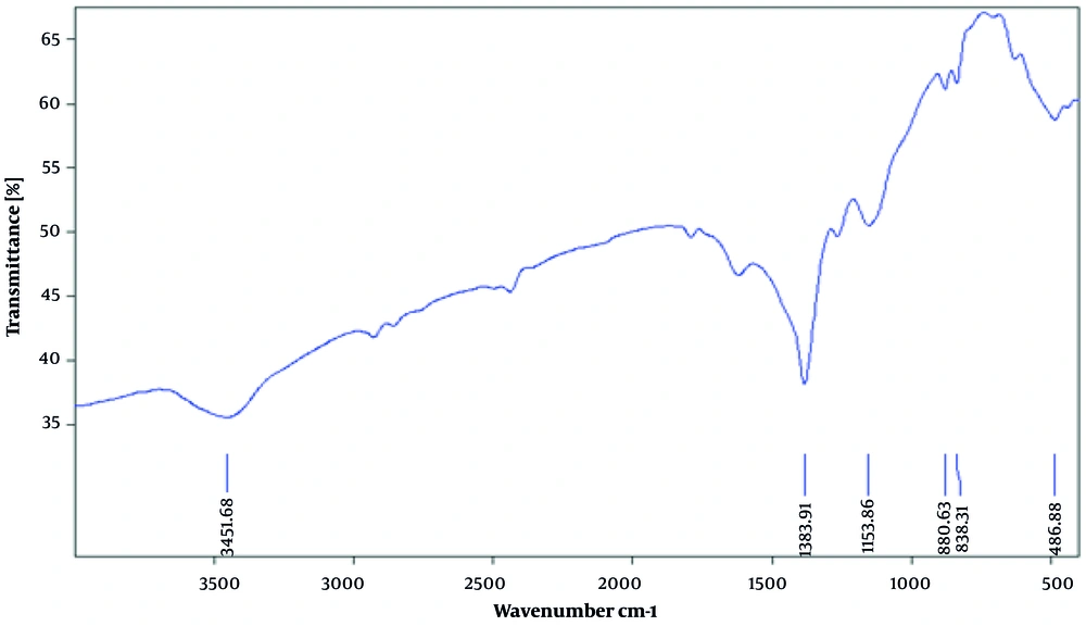 A questionnaire was completed on 50 urine samples from patients who had visited the outpatient clinic of Zabol City Hospital. In this study, we conducted the biosynthesis of oxide NPs using a shoot extract of Ducrosia anethifolia, a medicinal plant. Zinc (Zn) acetate dihydrate and sodium hydroxide were employed as precursors in the process (15, 16). The structure and morphology of the synthesized NPs were analyzed using several analytical techniques (Figure 1).