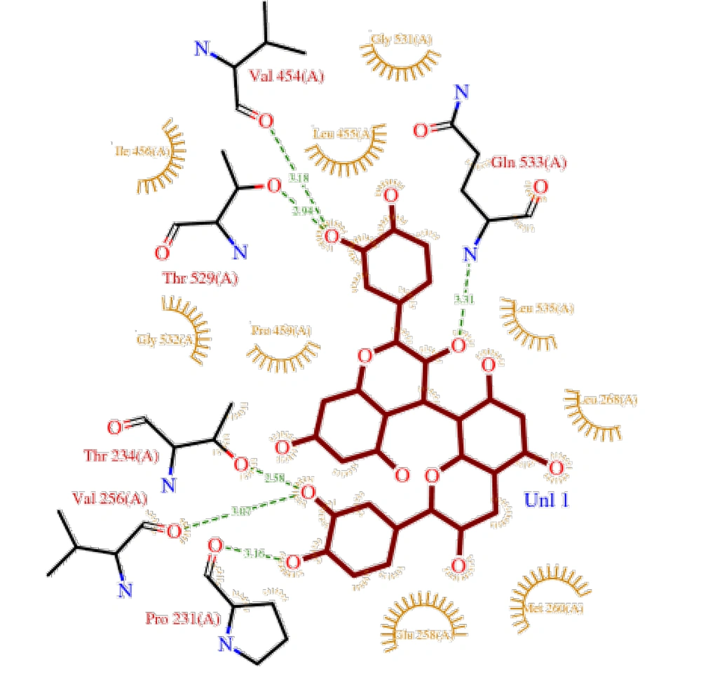 In recent years, bioinformatic approaches and molecular modeling have emerged as powerful tools for identifying ligand-protein interactions and predicting the molecular pathways influenced by natural compounds (5-7). Molecular docking enables the identification of binding sites, interaction energies, and structural features of active sites, thereby facilitating the design of natural molecule-based therapeutics.